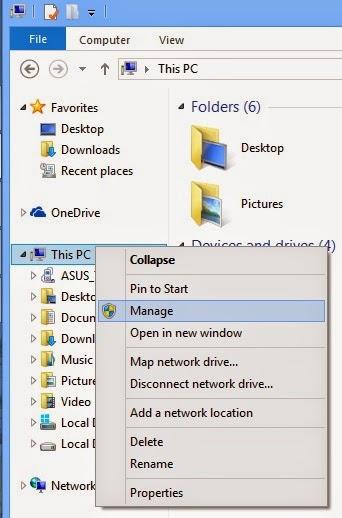 1. Langkah pertama, masuk ke dalam menu “Device Manager”dengan cara klik kanan pada my computer atau this pc,kemudian pilih Manage.